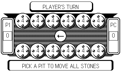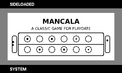 A classic strategy board game reimagined for Playdate. Collect stones by strategically moving around the board in this faithful adaptation of the ancient game. Features two AI difficulty levels, intuitive controls using the d-pad or crank, and elegant black and white visuals. Play against the computer in this perfect blend of traditional gameplay with Playdate's unique aesthetic. Simple to learn, challenging to master!